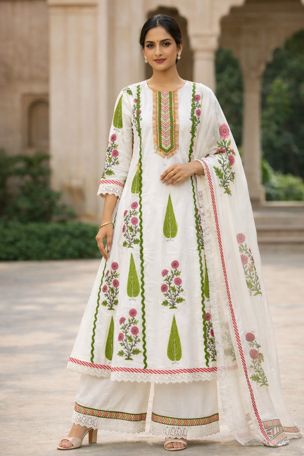 Ideal for festive gatherings, daytime celebrations, family functions, and summer ethnic wear
